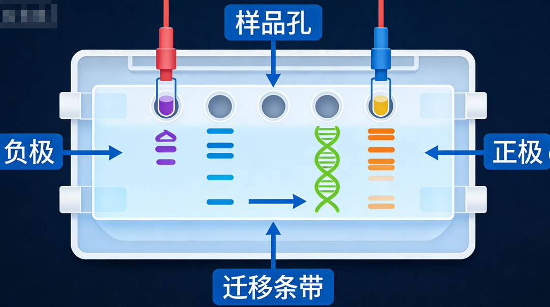 从电泳体系和操作条件来看,电场强度越高,分子迁移越快,但电压过大会产生过多热量,导致条带变形甚至凝胶熔化。缓冲液pH值会改变分子的带电情况,从而影响其净电荷、迁移方向和速度。缓冲液离子强度同样重要,离子强度过低会使导电性变差、条带模糊;离子强度过高则会产生大量焦耳热,干扰正常迁移。另外,温度也会影响迁移:温度升高通常会使迁移率略有上升,温度不均则会导致条带歪斜。